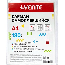 Карман самоклеящийся "deVENTE" А4, 223x303 мм, ПВХ 180 мкм, прозрачный, фактура "апельсиновая корка" клеевая основа с защитной подложкой, на любую гладкую поверхность, 1 шт в упаковке