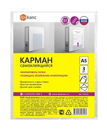 Папка карман прозр. самоклеящийся А5 165*215, 3 шт