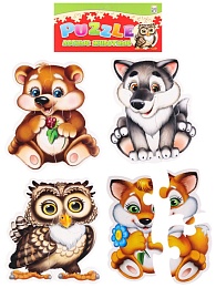 Пазл мягкий 16 элементов "Лесные животные" 4 картинки