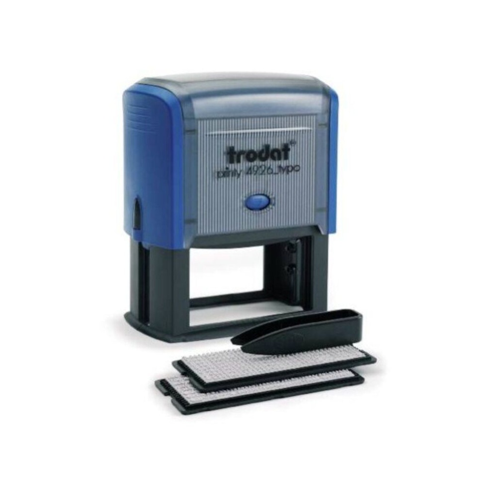 Штамп предназначен для проставления оттиска набранного текста. Используется в качестве информационного или адресного штампа. Размер оттиска 47*18 мм. Максимальное количество строк 4. В комплекте касса букв и цифр, пинцет, сменная штемпельная подушка синего цвета. Максимальный размер шрифта 3,1 мм, минимальный - 2,2 мм. Специальные держатели позволяют не пачкать руки при смене подушки. Корпус снабжен прозрачным верхним окном для идентификации оттиска.