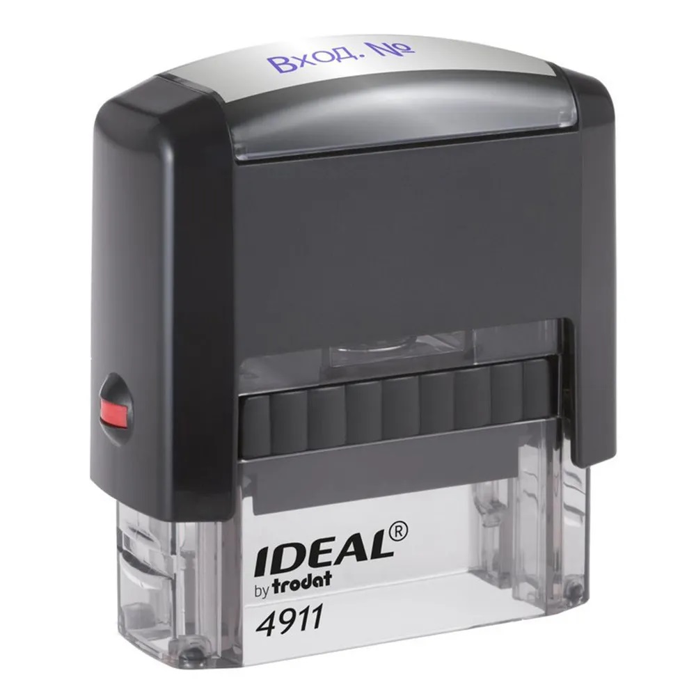 Стандартный штамп в прочном пластиковом корпусе с автоматическим окрашиванием в комплекте со сменной штемпельной подушкой, заправленной краской синего цвета.