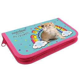 Пенал 1 отд. с 1-ой откид.пл. (212*135*26) молния, ткань "Котёнок с радугой"