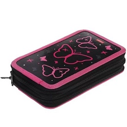 Пенал 2 отд. (190*110*40) молния, лам.картон "Магия бабочек" глянц.лам., тисн., таблица умножения
