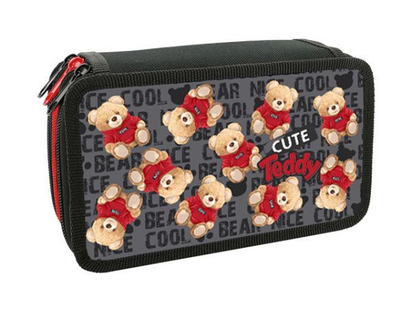 Пенал 3 отд. (190*110*63) молния, ткань "Мишки паттерн"