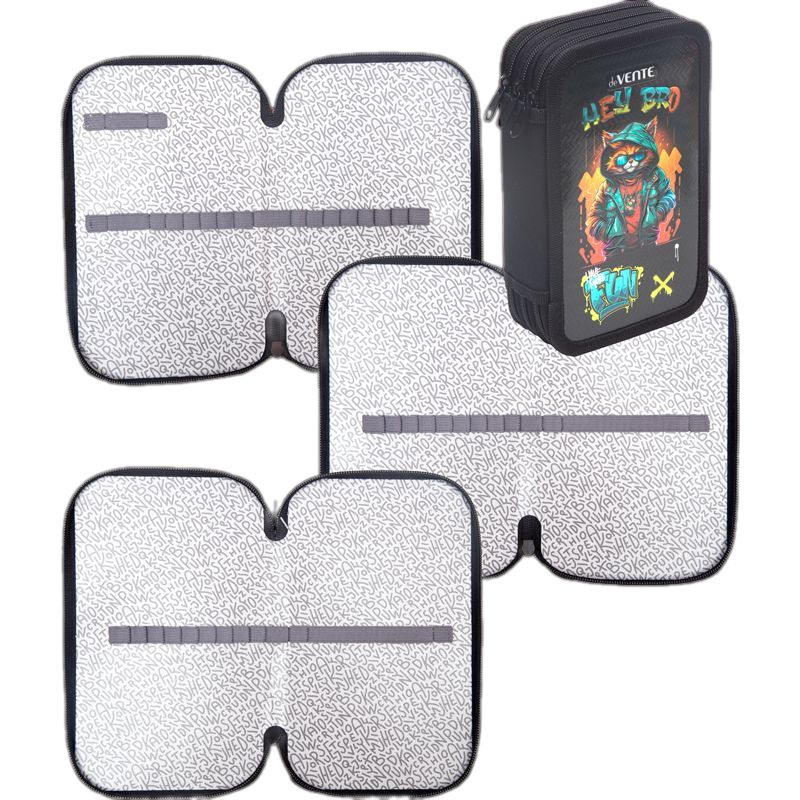 Пенал "deVENTE. Hey Bro" 20,5x12 см, трехстворчатый прямоугольный для 50 предметов, на молнии, картон с конгревным тиснением