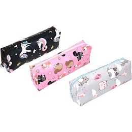 Пенал "Attomex. Cute Animals" 20x7x3,5 см, прямоугольный, на молнии, искусственная кожа с рисунком, ассорти 3 дизайна