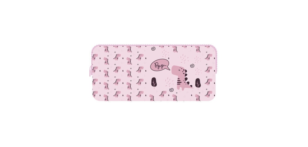 Пенал-косметичка (200*90*55) 2 отд., ткань, молния "Розовый дино" с ручкой