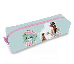 Пенал-косметичка (210*50*60) молния, ткань "Девочка с щенком"