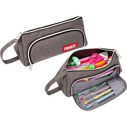 Пенал-косметичка (210*85*85) молния,ткань "Private",с ручкой,карман,серый,на 70пр.