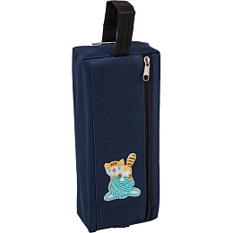 Пенал "deVENTE. Funny Cats" 21x9x4,5 см, прямоугольный для 70 предметов, на молнии, текстильный, с ручкой, вышивка, темно-синий