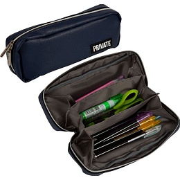 Пенал-косметичка (210*90*50) молния,кожзам "Private",с аппликацией,темно-синий,на 60пр.