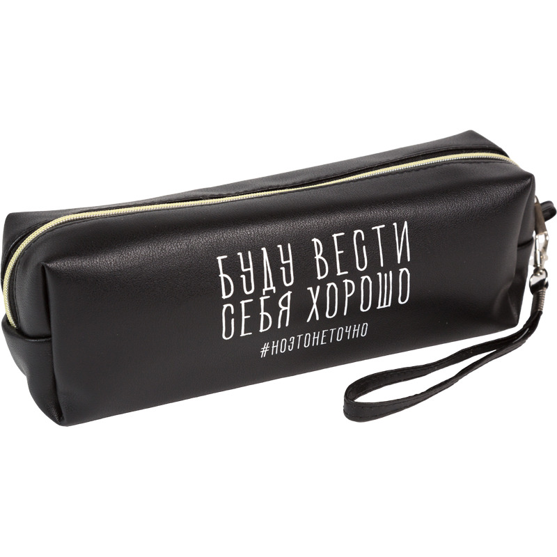Пенал-косметичка (215*80*50) молния, кожзам "Буду вести себя хорошо",с ручк.петлей на карабине,75пр.