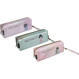 Пенал-косметичка "deVENTE. Mentality" 21,5x8x5 см, прямоугольный для 75 предметов, на молнии, сияющая черная искусственная кожа до -40C, с ручкой-петлей на карабине, 3 дизайна ассорти, индивидуальная упаковка