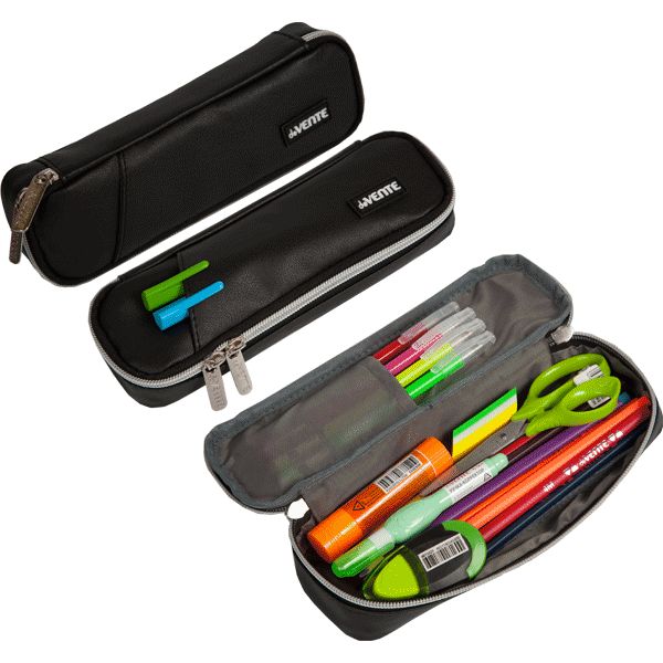 Пенал "deVENTE. Private" 22x6x4 см, овальный для 40 предметов, матовая искусственная кожа до -40C, внешний карман, внутренний карман, с каучуковой аппликацией, черный