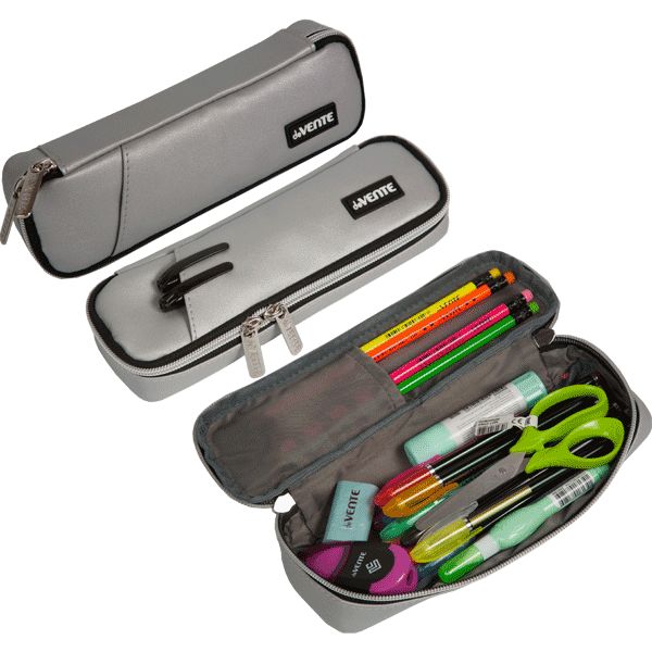 Пенал "deVENTE. Private" 22x6x4 см, овальный для 40 предметов, матовая искусственная кожа до -40C, внешний карман, внутренний карман, с каучуковой аппликацией, серебристый