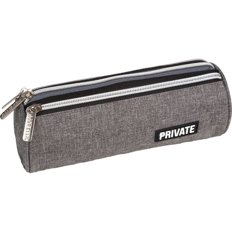 Пенал "deVENTE. Private" 22x8x8 см, круглый для 70 предметов, плотный износостойкий полиэстер с водоотталкивающей пропиткой, с 3-мя отделениями на молнии, с аппликацией из каучука, серый