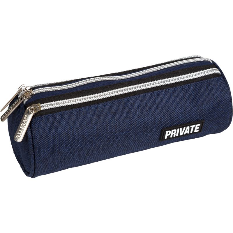Пенал "deVENTE. Private" 22x8x8 см, круглый для 70 предметов, плотный износостойкий полиэстер с водоотталкивающей пропиткой, с 3-мя отделениями на молнии, с аппликацией из каучука, темно-синий