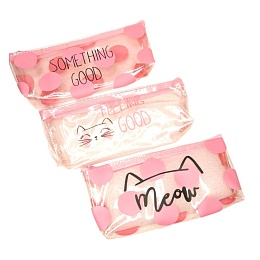 Пенал-косметичка (195*85) ПВХ, молния "Мяу" прозрачный, ассорти