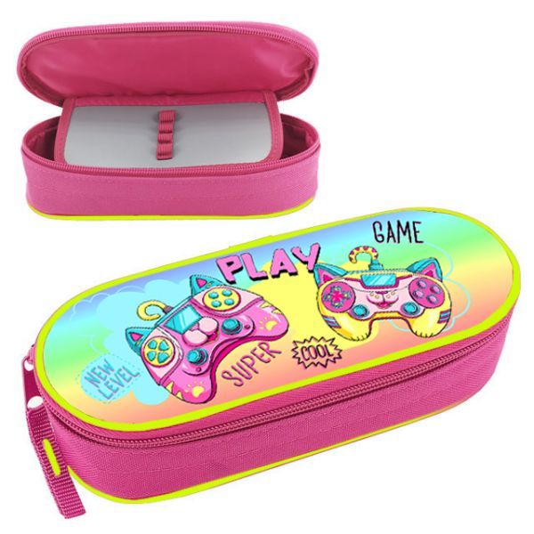 Пенал-косметичка с откид.планкой (210*85*50) молния, ткань "Супер джойстики"