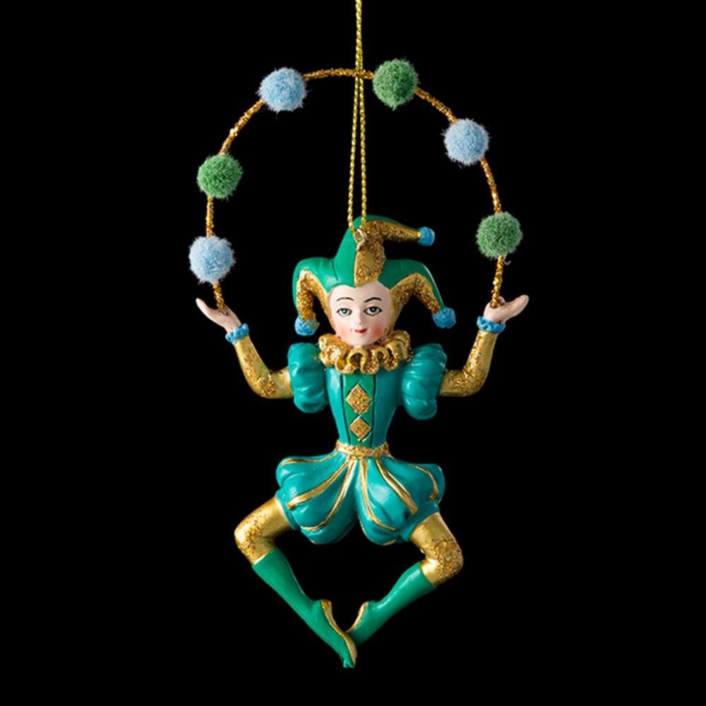 Яркие веселые персонажи Венецианского карнавала на новогодней елке вовлекут в вихрь итальянского веселья. Такие украшения оригинально смотрятся на ветках, добавляя атмосферу праздника и волшебства. Наряд Арлекина восхищает ярким сочетанием золотого и бирюзового цветов. Разноцветные шарики выполнены в виде помпонов. Групповая упаковка предназначена только для безопасной транспортировки и хранения.