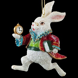 Серия елочных украшений по мотивам сказки Алиса в Стране Чудес включает следующих персонажей: Алиса, Белый Кролик, Червонная Королева, Шалтай-Болтай, Червонный Валет, Безумный Шляпник, Чеширский Кот и другие. Когда они вместе собираются на елке, то интересно дополняют друг друга. Сказочные персонажи красиво смотрятся и создают уютную атмосферу дома. Фигурка Белого Кролика отличается тонко прорисованными деталями. Изделие является относительно тяжелым, предпочтительно использование на искусственной елке. Групповая упаковка предназначена только для безопасной транспортировки и хранения.