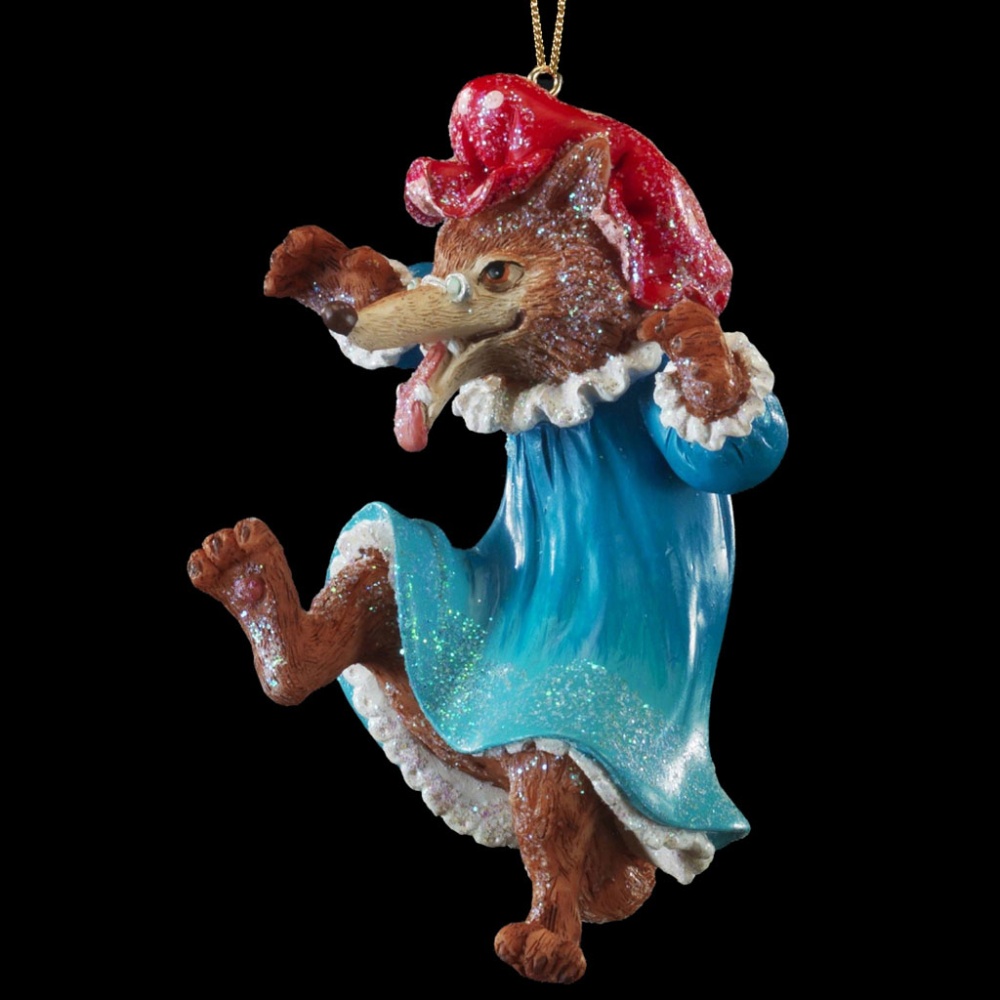 Красная Шапочка и Серый Волк представляют коллекцию елочных украшений по мотивам одноименной сказки Шарля Перро. Сказочные персонажи красиво смотрятся и создают уютную атмосферу дома. Волк облачен в чепец и сорочку предварительно съеденной им бабушки. Украшение выделяется множеством тонко выполненных деталей, которые можно рассматривать бесконечно. Изделие является относительно тяжелым, предпочтительно использование на искусственной елке. Групповая упаковка предназначена только для безопасной транспортировки и хранения.