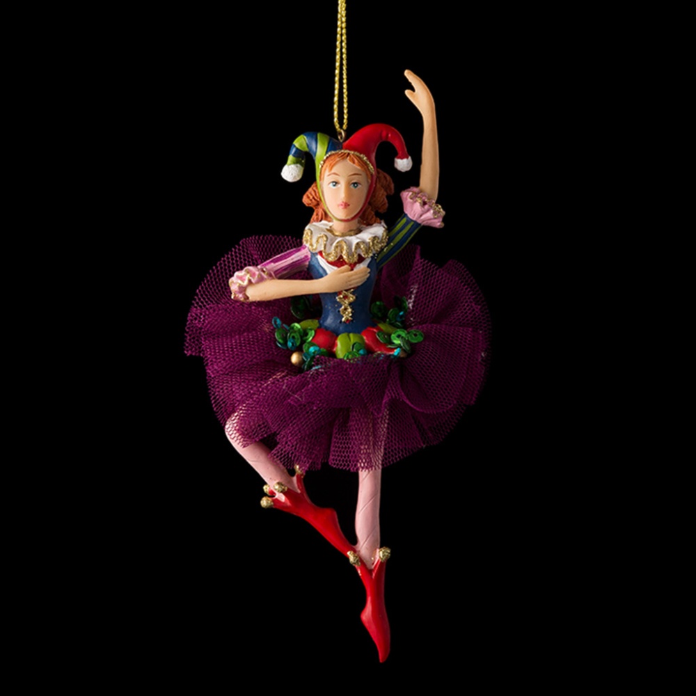Яркие веселые персонажи Венецианского карнавала на новогодней елке вовлекут в вихрь итальянского веселья. Такие украшения оригинально смотрятся на ветках, добавляя атмосферу праздника и волшебства. Пышная текстильная юбка Феи Карнавала декорирована синими и зелеными пайетками в тон ожерелья. Групповая упаковка предназначена только для безопасной транспортировки и хранения.