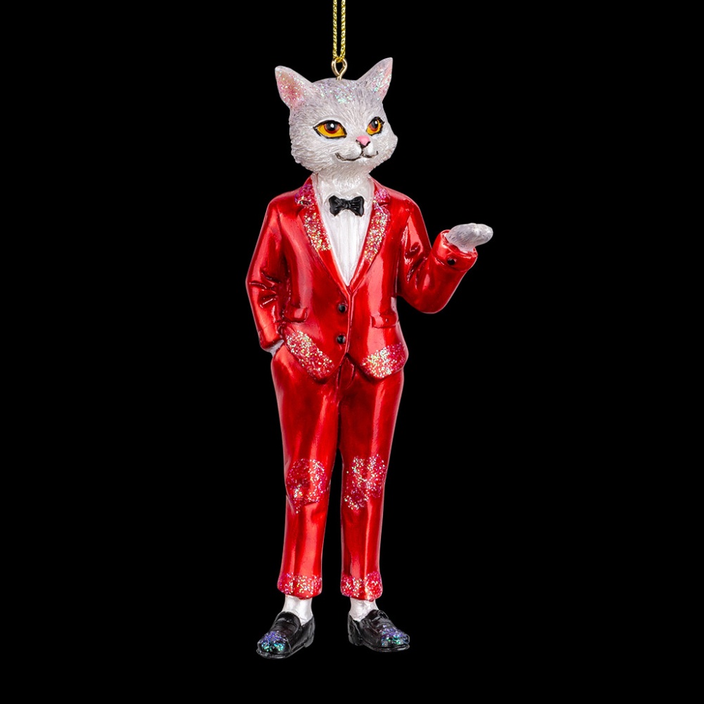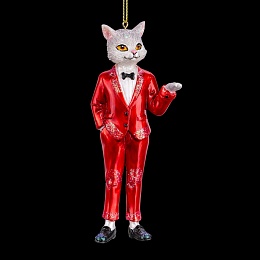 Нарядный кот восхищает элегантным костюмом красного цвета. Необычный персонаж будет ярко выделяться среди елочных игрушек и создавать праздничную атмосферу. Групповая упаковка предназначена только для безопасной транспортировки и хранения.