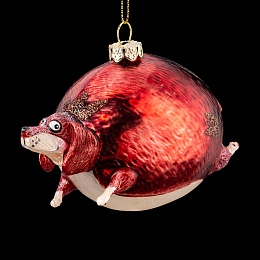 Уникальная елочная игрушка, аналог которой сложно найти - отличный презент к Новому году. Это не просто шар - это веселый, объемный, и со всех сторон очаровательный персонаж. Такса с забавной мордочкой отличается сверкающим покрытием и декором из блесток. Изделие выполнено из стекла высокого качества. Голова и лапы персонажа сделаны из полирезины, что позволяет максимально точно передать детализацию. Групповая упаковка предназначена только для безопасной транспортировки и хранения.