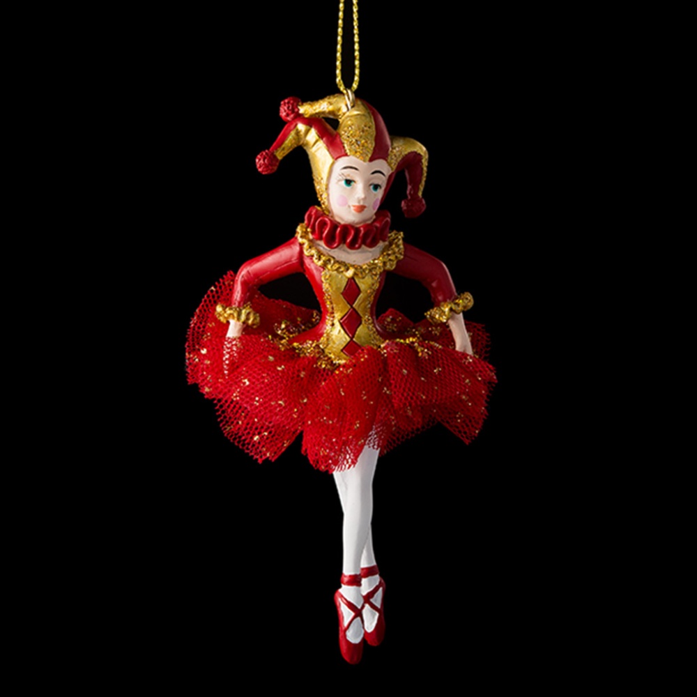 Яркие веселые персонажи Венецианского карнавала на новогодней елке вовлекут в вихрь итальянского веселья. Такие украшения оригинально смотрятся на ветках, добавляя атмосферу праздника и волшебства.Наряд девушки восхищает ярким сочетанием золотого и красного цветов, пышная юбка выполнена из текстиля. Групповая упаковка предназначена только для безопасной транспортировки и хранения.