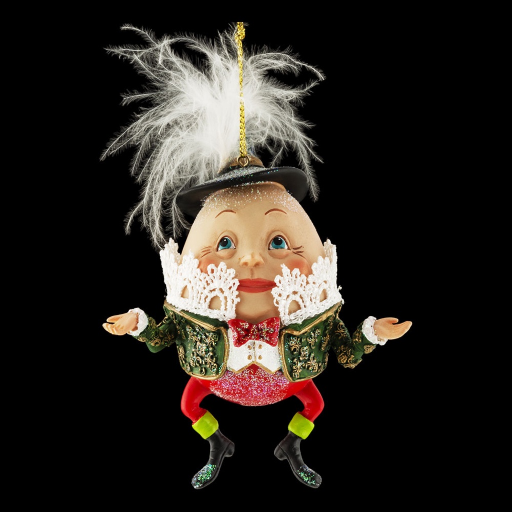 Серия елочных украшений по мотивам сказки Алиса в Стране Чудес включает следующих персонажей: Алиса, Белый Кролик, Червонная Королева, Шалтай-Болтай, Червонный Валет, Безумный Шляпник, Чеширский Кот и другие. Когда они вместе собираются на елке, то интересно дополняют друг друга. Сказочные персонажи красиво смотрятся и создают уютную атмосферу дома. Шалтай-Болтай отличается тонко прорисованными деталями. Изделие является относительно тяжелым, предпочтительно использование на искусственной елке. Групповая упаковка предназначена только для безопасной транспортировки и хранения.