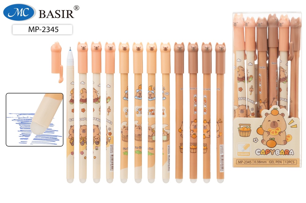 Ручка гелевая. Стираемая. "КАПИБАРА". Цв.корпус с рисунком. Ассорти. 0,38 mm. Синяя