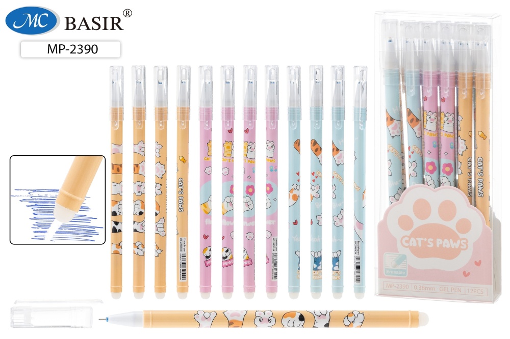 Ручка гелевая. Стираемая. "ЛАПКИ". Цв.корпус с рисунком. Ассорти. 0,38 mm. Синяя
