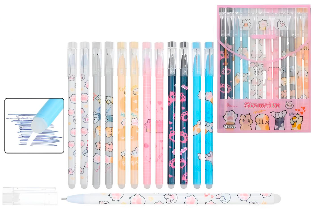 Ручка гелевая стираемая. "ЛАПКИ". Цветн. с рисунком корпус Ассорти. 0,5 mm; синяя, в пластиковом блистере.
