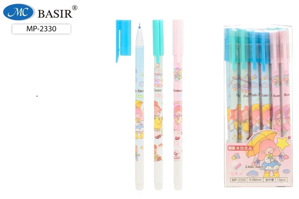 Ручка гелевая стираемая. "LITTLE STARS" цветной с рисунком корпус, в ассортименте. 0,38 мм. Синяя