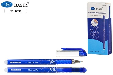 Ручка гелевая стираемая. Синий корпус с серебристым рисунком. 0,5 мм. Синяя