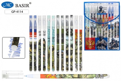 Ручка гелевая. Стираемая. ""SOLDIERS". Цв.корпус с рисунком. Ассорти. 0,5 mm. Синяя
