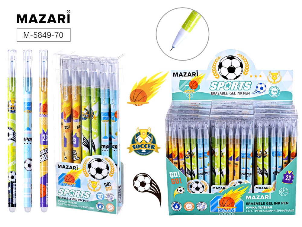 Ручка гелевая стираемая. "SPORTS". Игольч.наконечник, 0,38 мм. Синяя