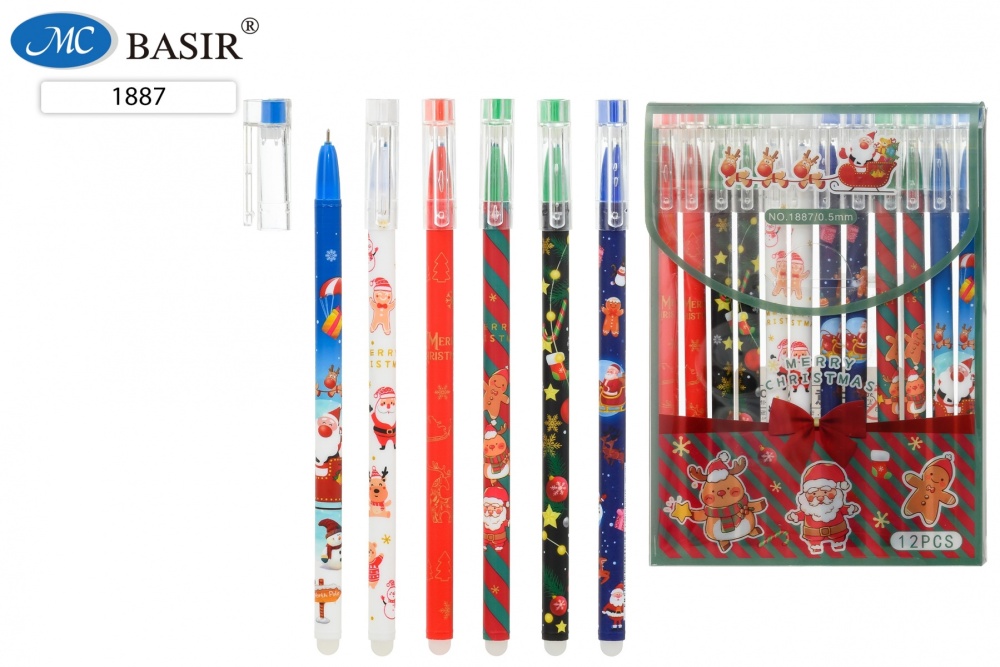 Ручка со стираемыми чернилами гелевая: "НОВОГОДНИЕ"; яркий, цветной корпус с рисунком .ассорти.; толщина пишущего наконечника-0,5 mm; цвет чернил-синий.