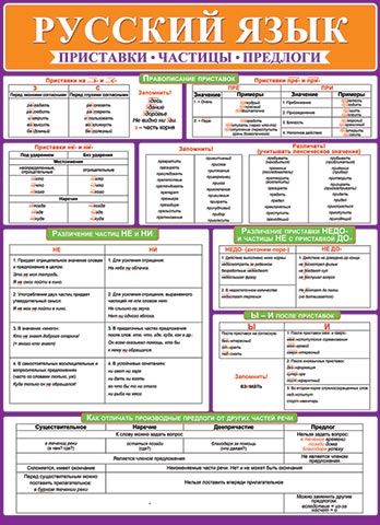 Плакат 50*70см "Русский язык. Приставки. Частицы. Предлоги"