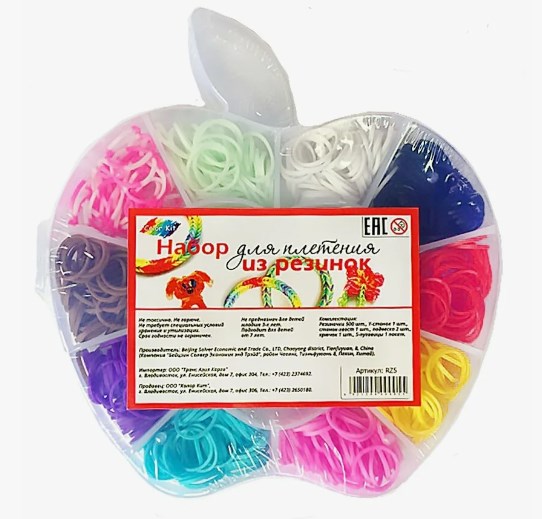 Плетение из резинок. Набор: Резинки разноцветные 500 шт + инструменты для плетения. В пластиковой коробке
