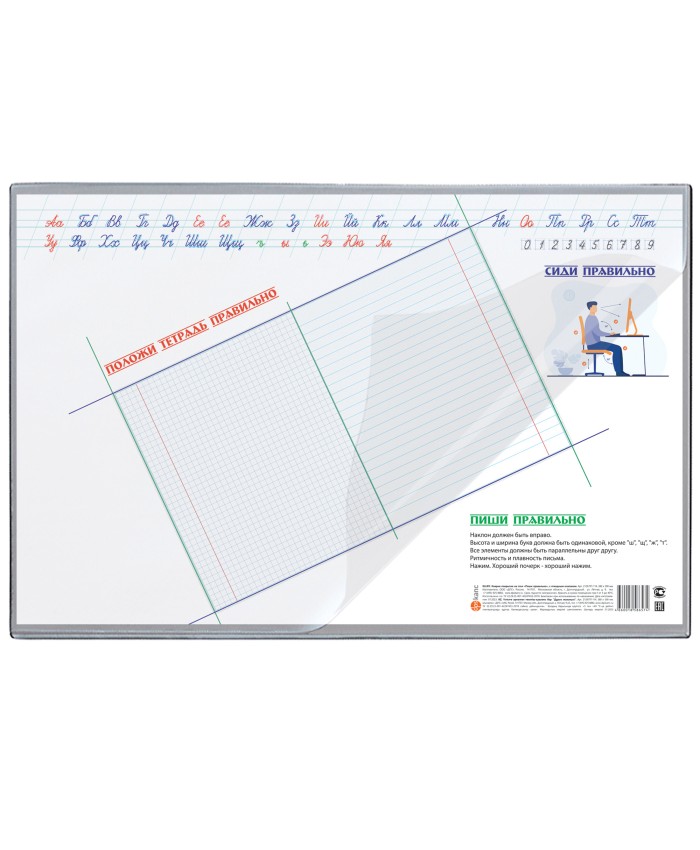 Подкладка д/письма с прозрачным клапаном "Пиши правильно", 380х590 мм