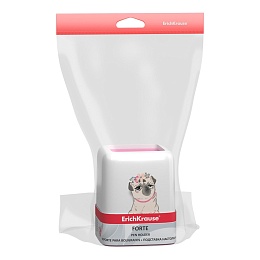 Подставка настольная пластиковая ErichKrause Форте, Мопс на каникулах, белая с розовой пастельной вс