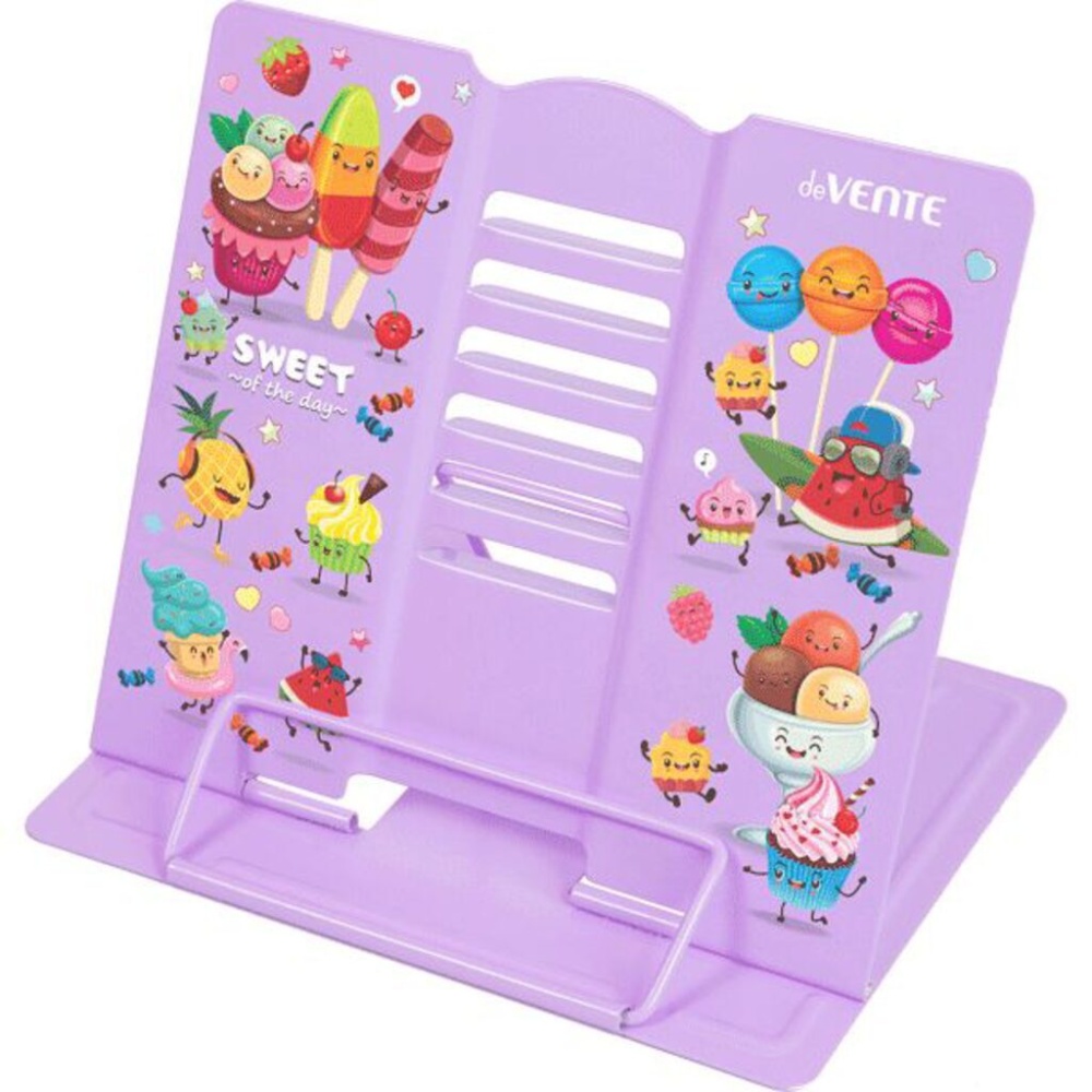 Подставка для учебников и книг "deVENTE. Sweets" 21x19 см, металлическая окрашенная, вес 500 г, с противоскользящими ножками, с полноцветным рисунком, в пластиковом пакете с европодвесом