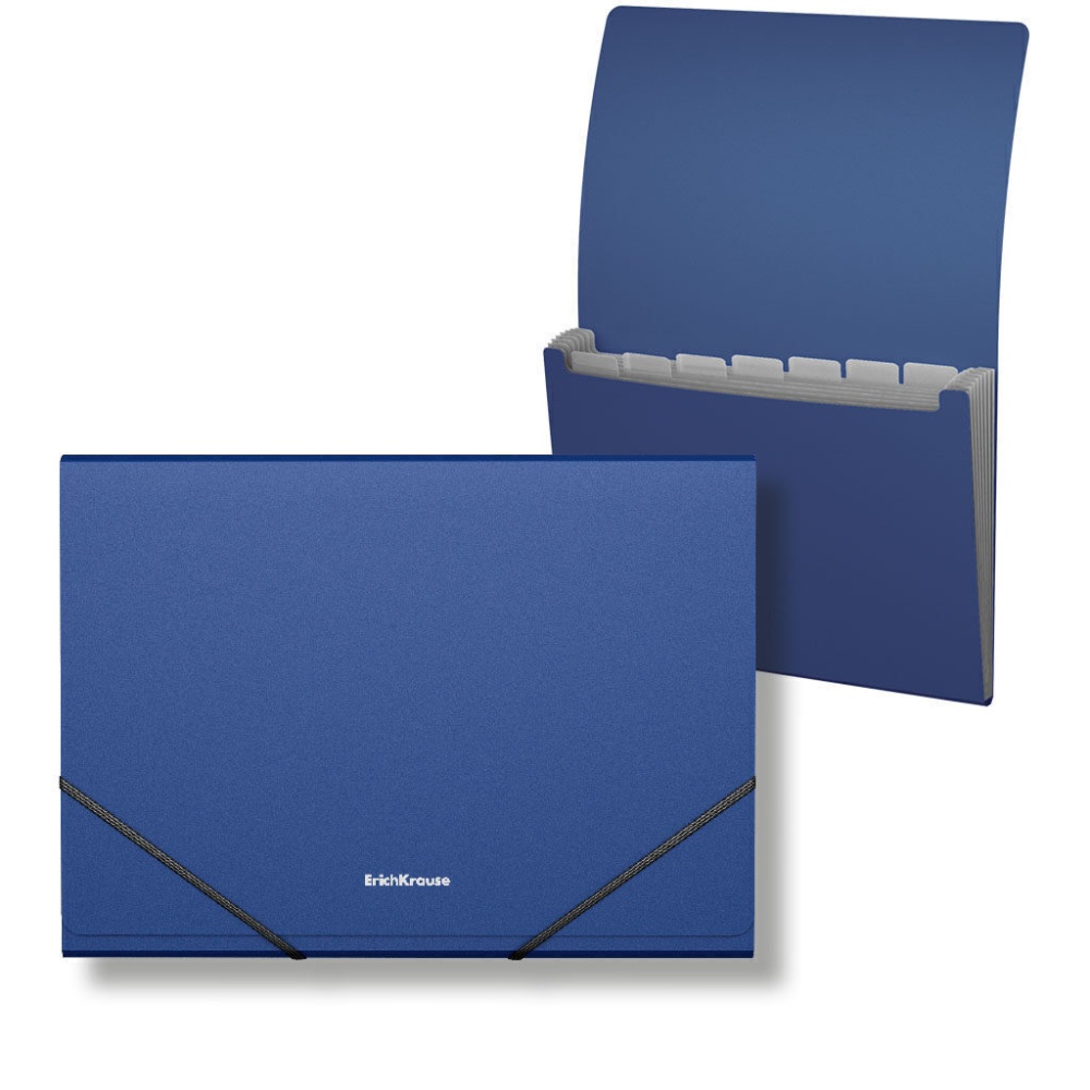 Папка-картотека с 6 отделениями формата А4 из высококачественного пластика с текстурой поверхности "песок", на которой не видно отпечатков пальцев и мелких царапин. Предназначена для хранения, систематизации и транспортировки документов. Цвет папки - синий. Эластичные резинки надежно удерживают папку в закрытом состоянии. Размер - 330х240х25мм, толщина - 0.6мм.