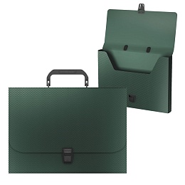 Портфель формата А4 из высококачественного пластика с текстурой поверхности Алмаз (бриллиант), на которой не видно отпечатков пальцев и мелких царапин. Предназначен для транспортировки документов. Цвет портфеля - зеленый. Портфель вмещает до 350 бумажных листов. Оснащен фирменным замком и ручкой с логотипом ErichKrause. Размер - 335х230х35мм, толщина - 0.7мм.