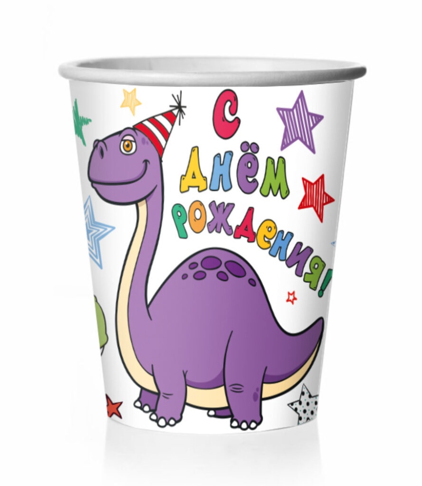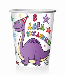 Стакан бум. "С Днем Рождения! Динозаврики" 250 мл, 8 шт.