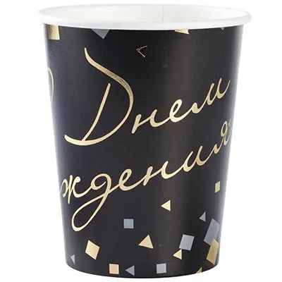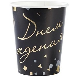 Стакан бум. 250 мл, 6 шт "С ДР Конфетти Party" черный