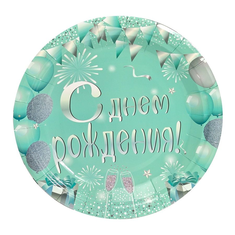 Тарелка бум. 18 см, 6 шт "С Днем рождения!" бирюза