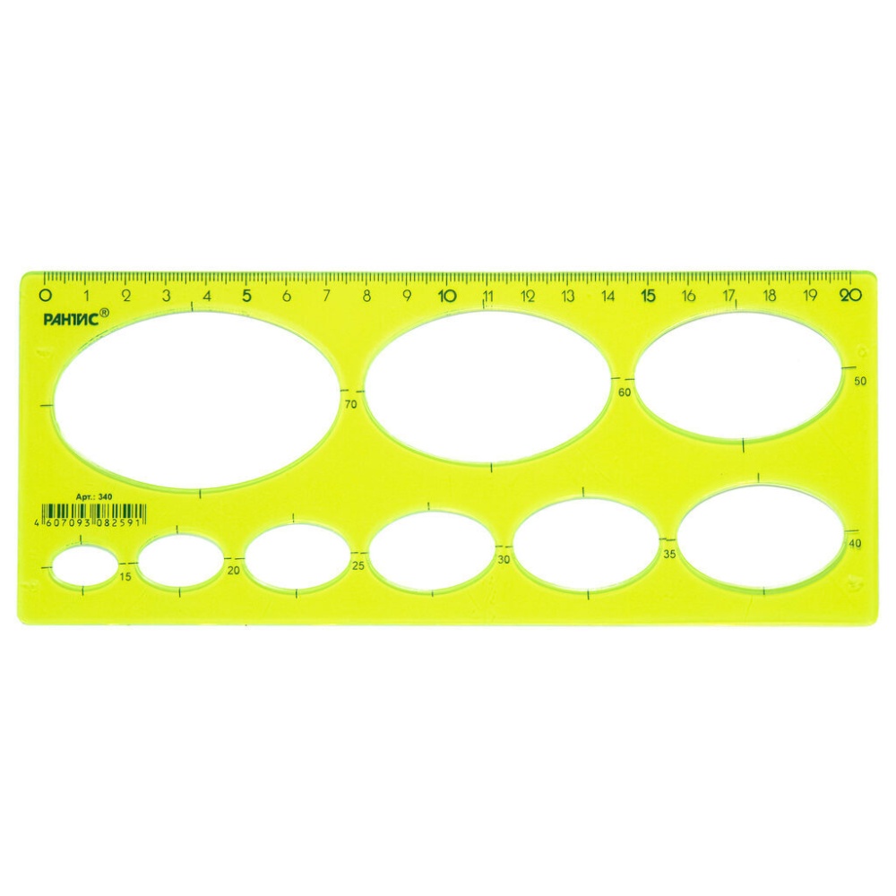 Трафарет 90*210 мм, содержит 9 эллипсов.  цветной, прозрачный Штрих-код на единице товара.